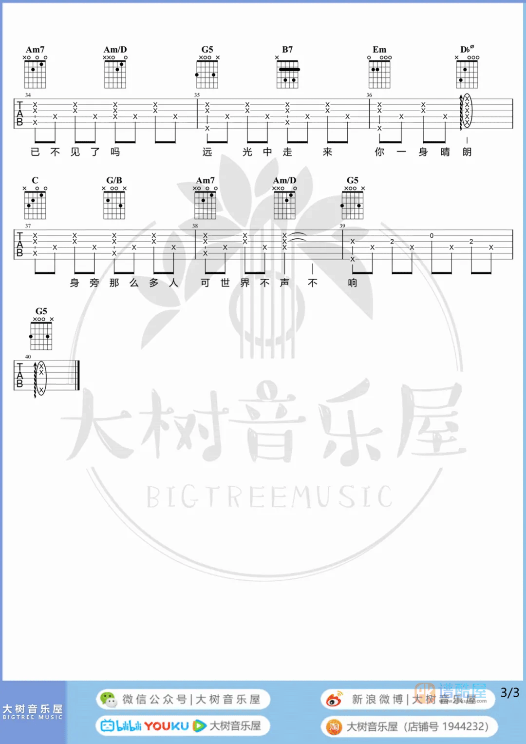 - 毛不易《无问》吉他谱弹唱版教学视频 附带G调指法编配弹唱六线谱 2023-12-10