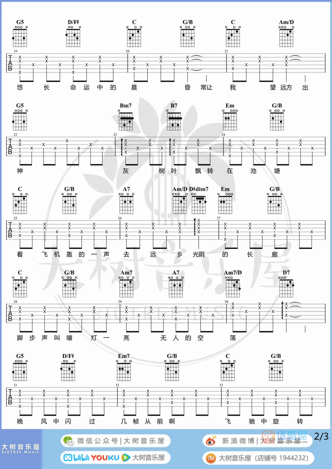 歌手:莫文蔚 | 制谱来源:大树音乐屋 | 曲谱难度:适中 | 曲谱类型:弹唱 | 编配调式:G调指法 | 变调夹:4品